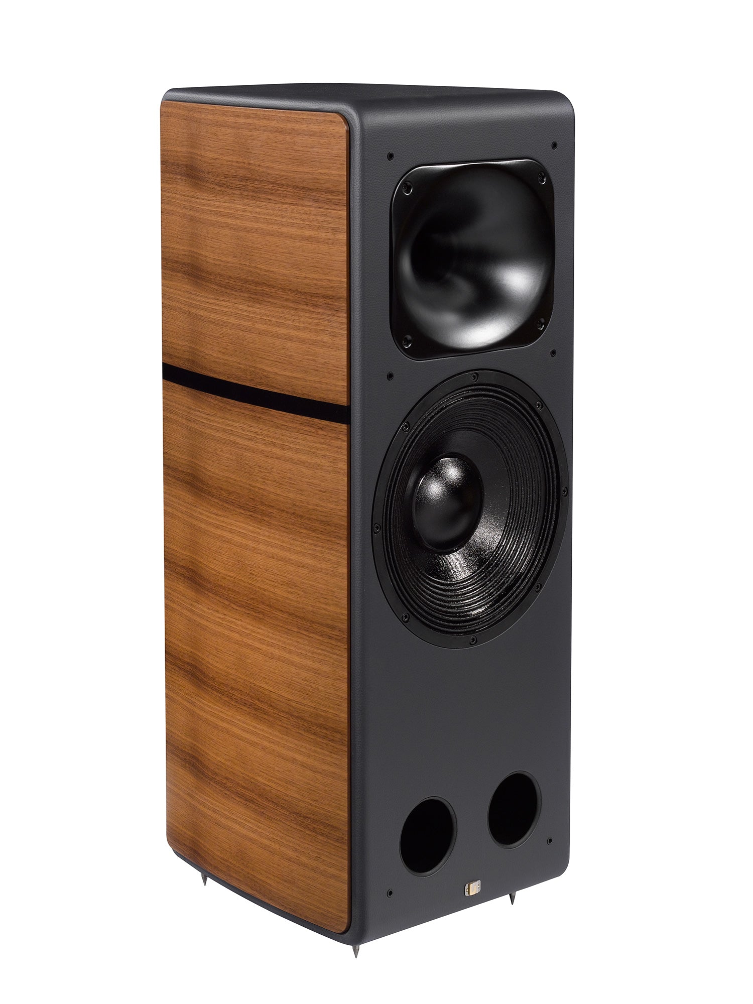 The cabinet is designed to be mounted on height-adjustable spikes. There are four external connectors to allow bi-amping. They are the same high-quality gold-plated brass connectors that are used in the flagship Malibran model. They accept all types of wire terminations, ensuring an electrical contact that is mechanically safe and effective.