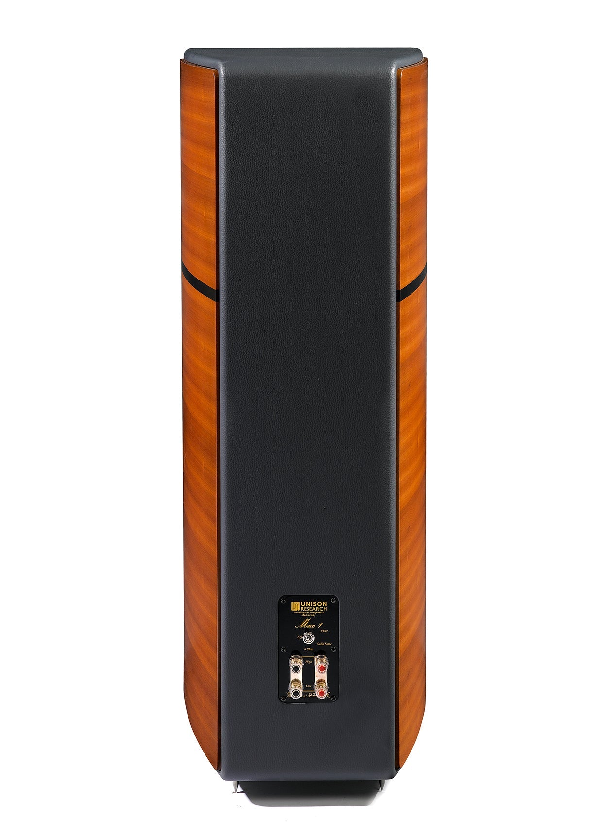 Particular care has been taken to make the impedance curve as smooth as possible to reduce the effect of the cables as well as the damping factor of the amplifier (tube or solid state). A switch on the back of the Max changes the damping factor so that the diffuser maintains consistent performance with both valve amplifiers and solid state. This switch can be set to "Valve" or "S. State." While the Max has been optimized for use with tube amps, a simple toggle of this switch will result in excellent results with solid state amplification.