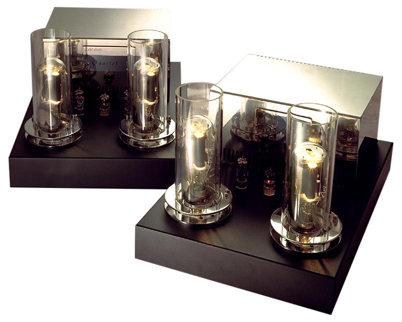 The Quartets are wonderfully musical amplifiers with lots of power and with the high frequency extension of a 300b. They are fitted with MKP capacitors and carbon film resistors. These amps also feature automatic biasing and have a solid state, twin choke, filtered power supplies.